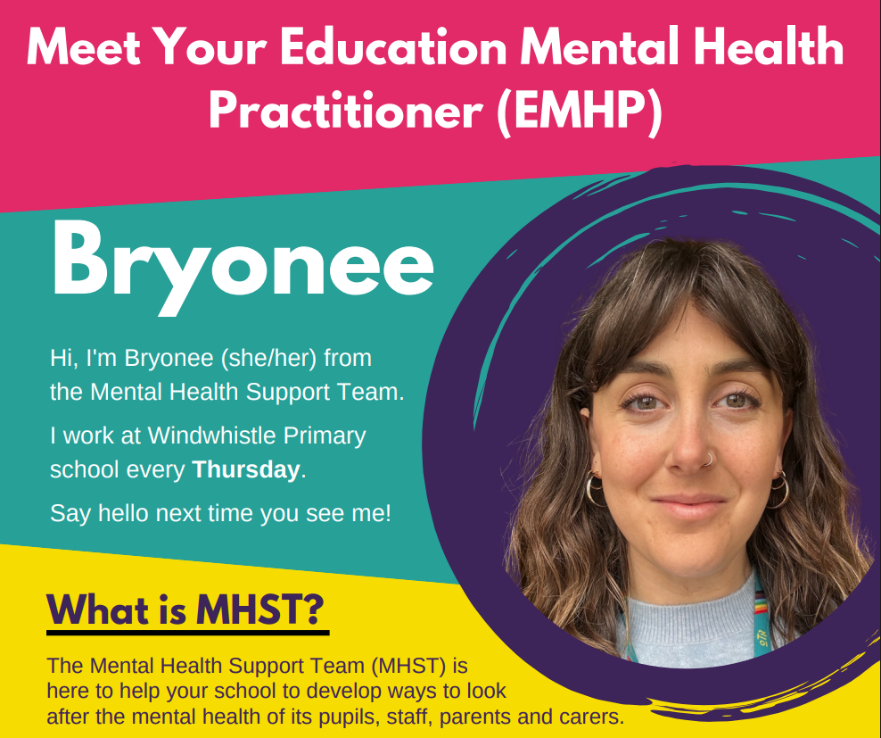 We are also proud to be working with MHST in North Somerset and our EMHP Bryonee is in school